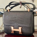 This stunning Hermès Constance 24cm bag is featured in Noir (Black) color. This bag is made from Matte Alligator Mississippi, and is one of the most difficult exotic piece to obtain from the store. Prized for its durability, this Matte Alligator will get more beautiful with age, developing its coveted satiny shine. Less prone to scratches and easier to handle than its shiny counterpart, matte alligator is the perfect choice for a one-and-only exotic invesment. The blind stamp located inside the bag is D, which indicates 2019 as the year of production.