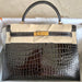 Hermès Kelly 32 Graphite Sellier Crocodile Porosus Lisse Gold Hardware GHW